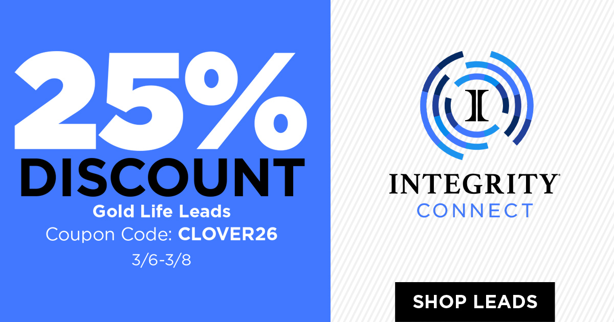 25% OFF Gold Life Leads — only in IntegrityCONNECT Leads! Use code CLOVER26 at checkout from March 6th until 11PM CT March 8th.