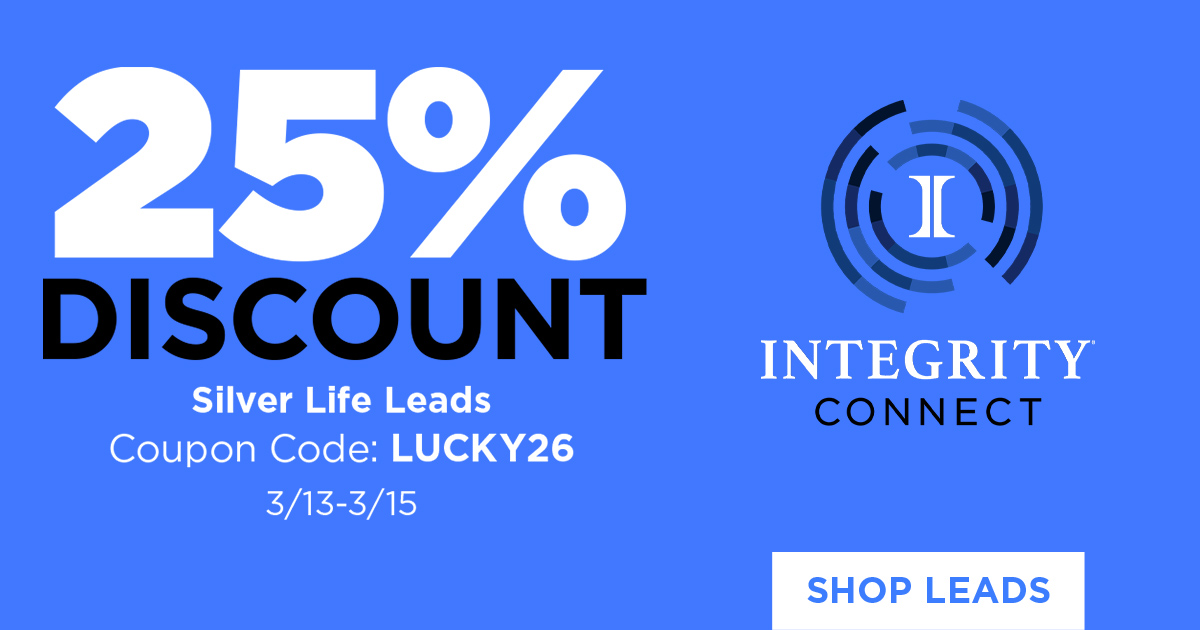 25% OFF Silver Life Leads — only in IntegrityCONNECT Leads! Use code LUCKY26 at checkout from March 13th until 11PM CT March 15th.